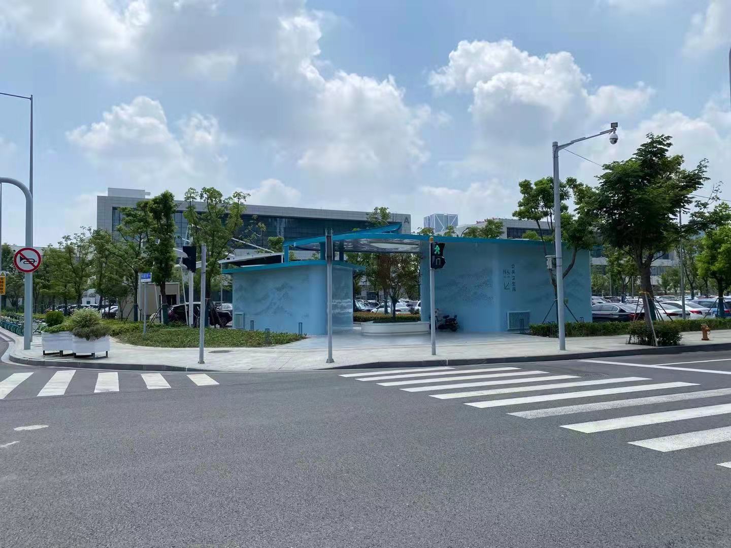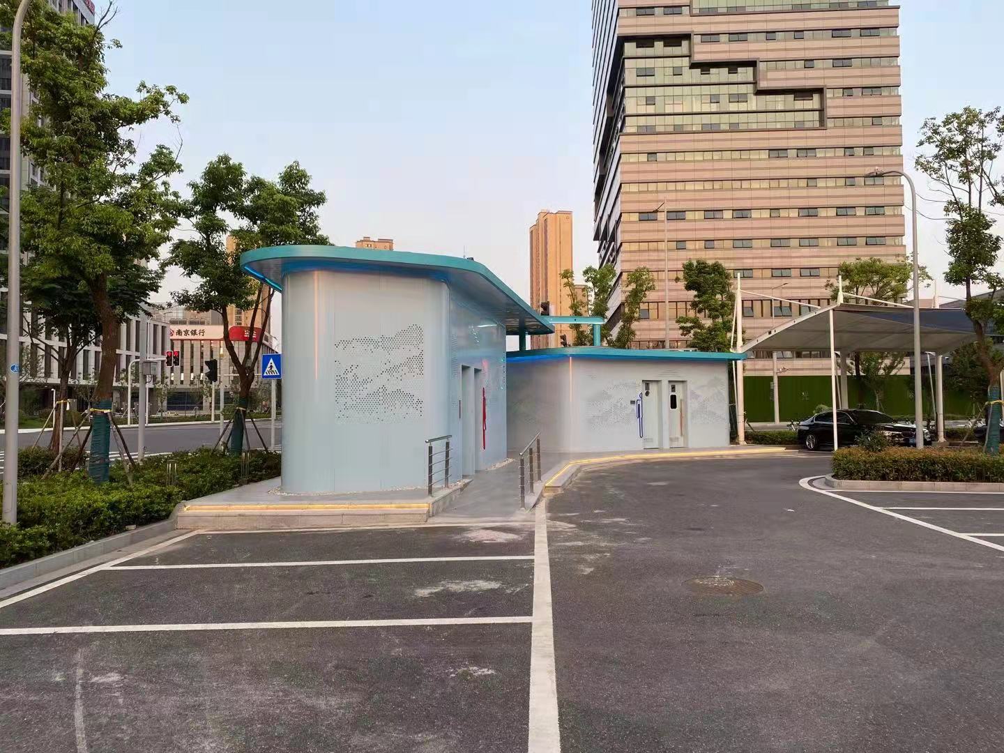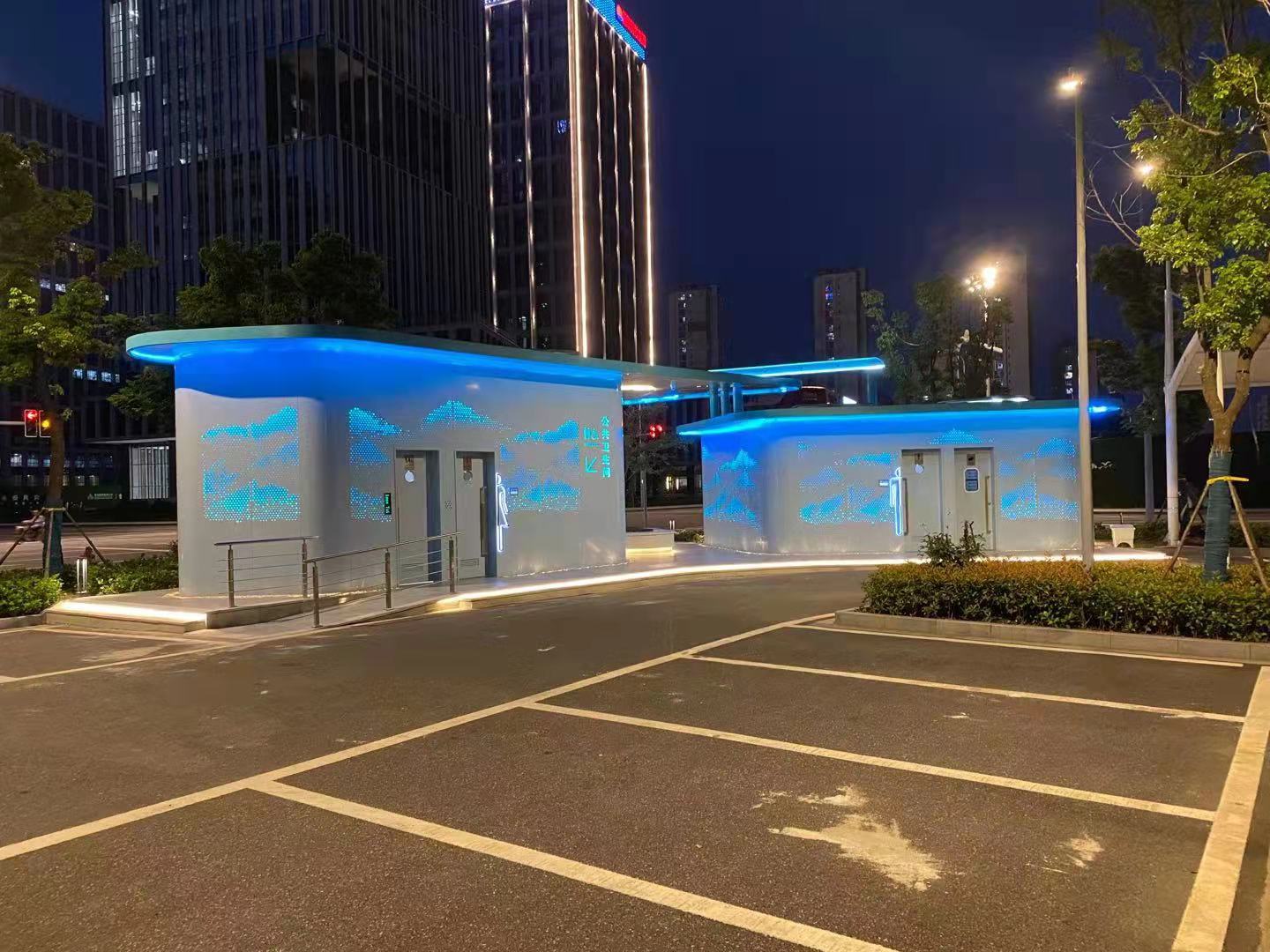 整体外立面采用全包围的铝板镂空设计,在内部再以灯光打亮的方式,远处看,整个厕所外立面犹如悬挂了一幅幅美丽的山水画,美轮美奂,与现代化城市风格相呼应,成为新北区一道靓丽的风景。